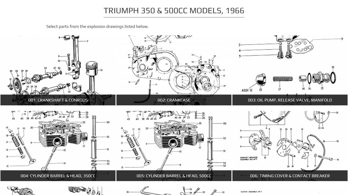 The Andover Norton website shop is easy to use, with detailed drawings and current stock availability to make the whole experience easy and fast. If you click on ‘Browse By Model’ this will allow you to choose the Model you require, and then you can choose the sub section drawing listing the parts on red tags. Click on a red tag to go to the part and then click Add to Cart to put it into your Shopping Basket.