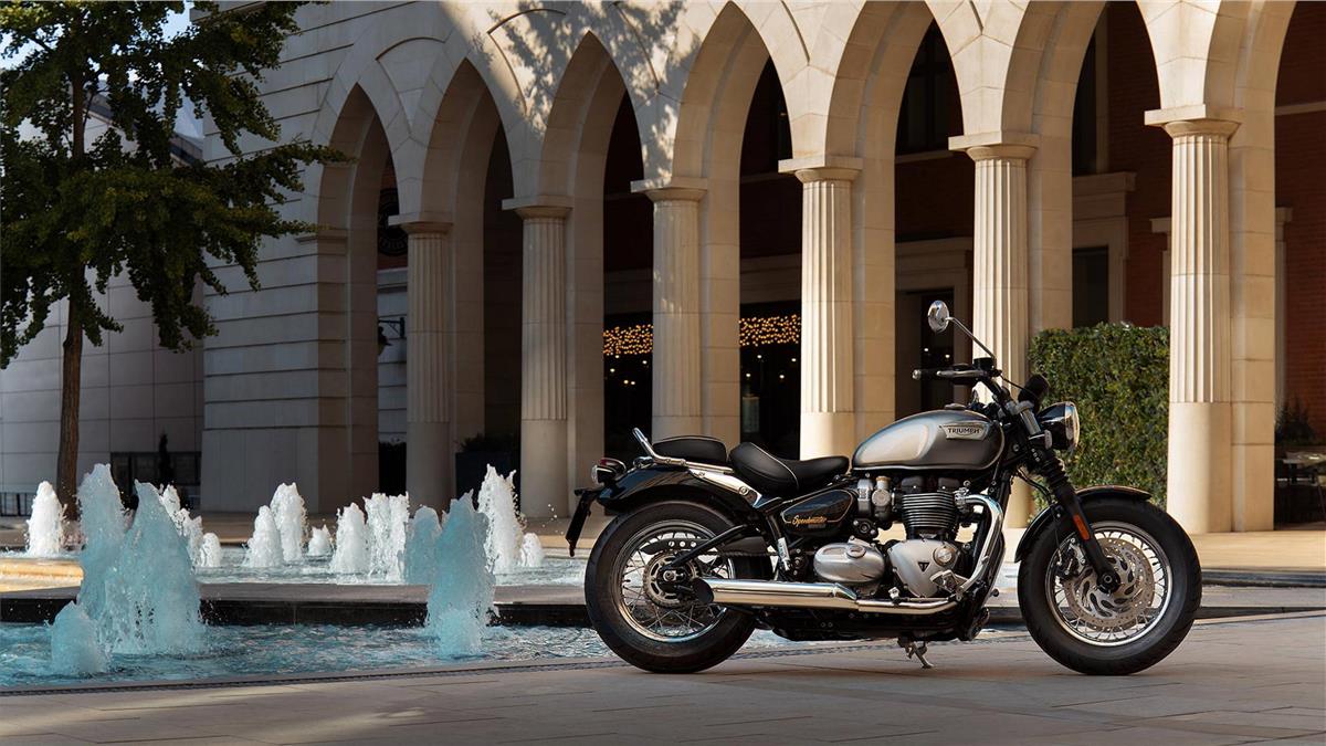 The Gold Line series comprises the Bonneville Bobber, Bonneville Speedmaster, Street Scrambler, Bonneville T100, Bonneville T120, Bonneville T120 Black, Scrambler 1200 XC, and Scrambler 1200 XE.