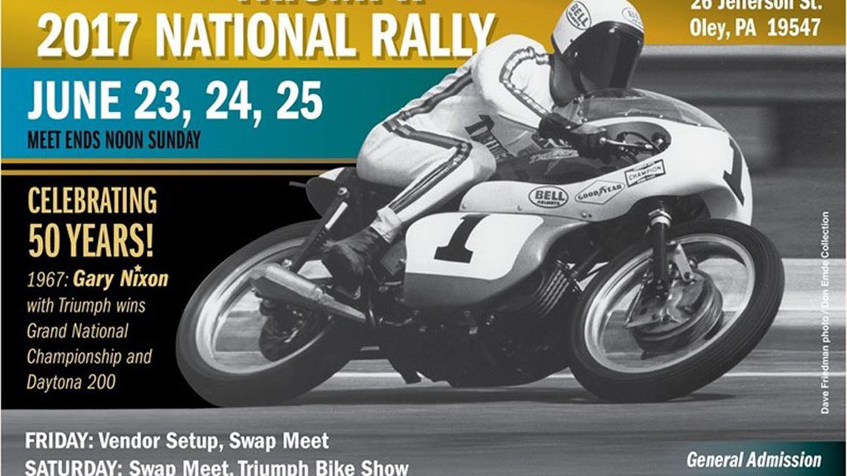 This year the US Triumph National Rally is taking place on the 23rd to the 25th June at the Oley Fairgrounds, 26 Jefferson Street, Oley, Pennsylvania, 19547. They are celebrating the 50th anniversary of Gary Nixon's win at the Daytona 200 in 1967 on a Triumph Daytona.