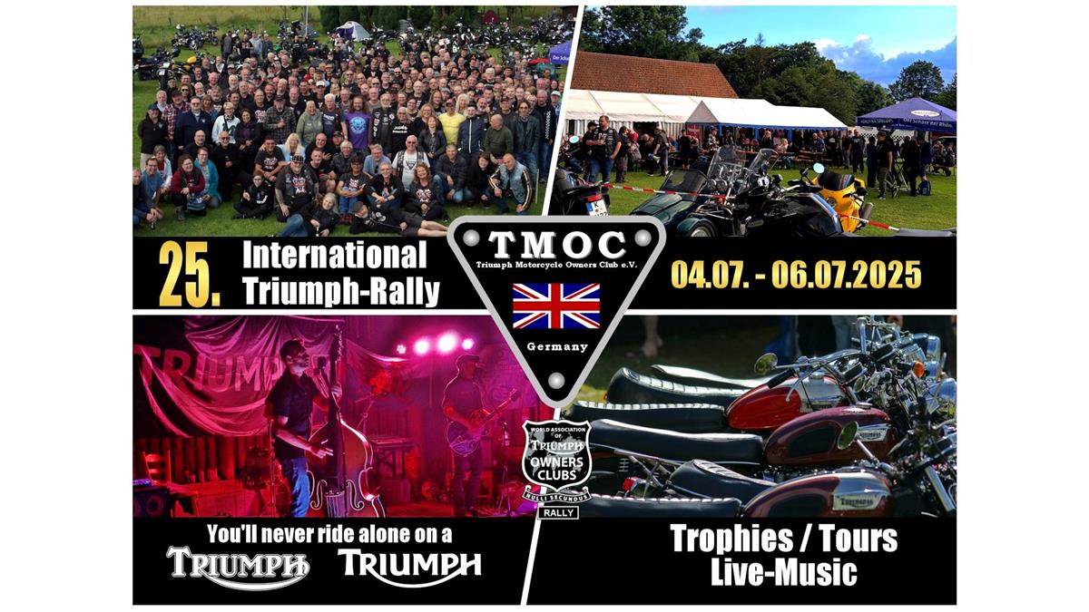 For the weekend 4th to 6th July 2025 TMOC (Triumph Motorcycle Owners Club Germany) invites you to its 25. International Triumph Rally for riders, owners and friends of English motorcycles. The event will take place at the usual Sommertreffen location near Hilders in the picturesque Rhoen mountains.