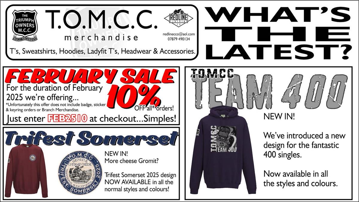 Lots of great news from Redline Clothing! For February we’re offering a 10% discount on all* TOMCC clothing & headwear. Just type FEB2510 at checkout to claim your savings. AND..We’ve just introduced 2 new designs onto the website. Just click on the link to order your merchandise ready for spring.