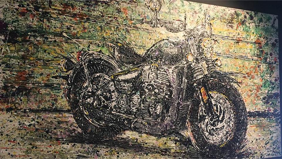 If you purchase a new Triumph from a registered dealer before the end of September 2018, you will get the chance to win a unique Bobber Black painting, created by PopBangColour (Ian Cook) - a contemporary British artist who uses a number of unusual painting techniques including remote controlled cars.