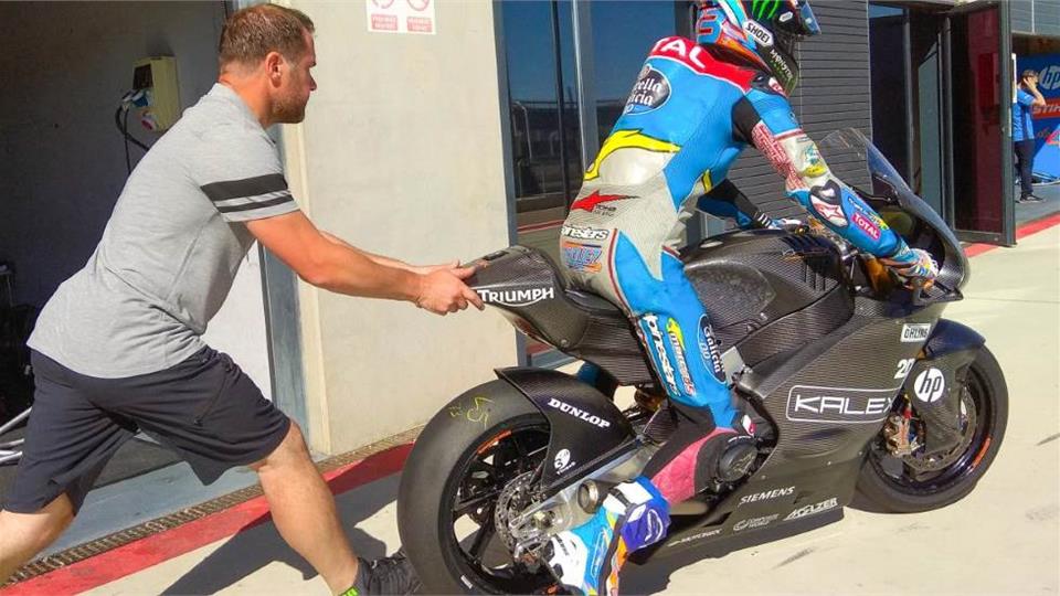 This week has seen several chassis manufacturers testing the new Triumph 765cc Moto2 engine in their chassis in preparation for the 2019 Moto2 series. Alex Marquez, Ricky Cardus, and Alex de Angelis have been taking the new machines through their paces testing the engine-chassis combination.