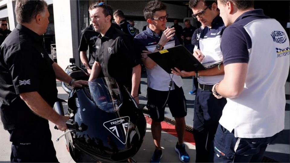 Preparations for Triumph's debut as engine manufacturer for Moto2 in 2019 are ongoing with Julian Simon testing the 765cc engine with the Magneti Marelli ECU at Aragon last week. Up until now it has looked like a 765cc engine in a Daytona 675 package, but bit by bit it is looking more like a new machine.