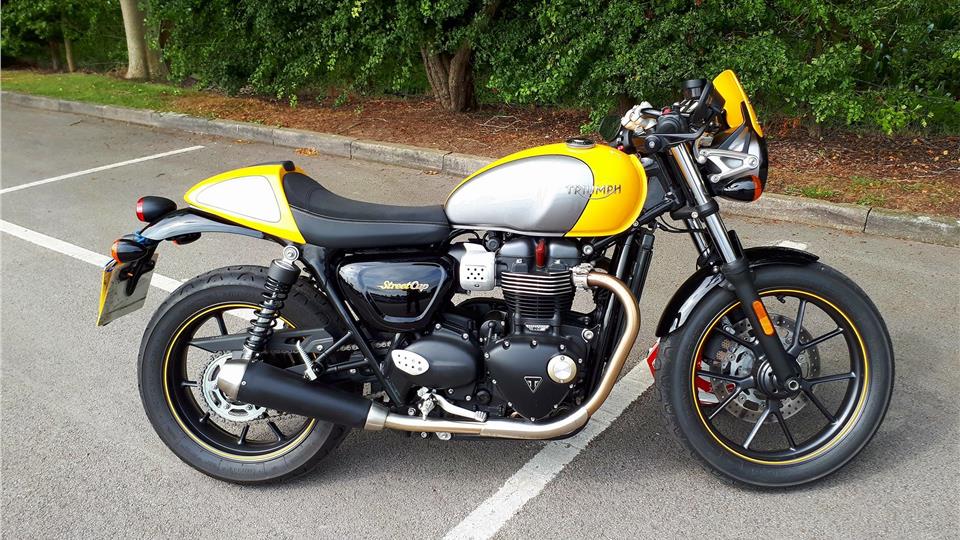 This time we have another of Triumphs modern classics, the Street Cup. Powered by the high torque 900cc parallel twin engine in common with the other bikes in the "Street" theme belting out a modest 54 BHP. Now this doesn't seem much in fact it is less than my 865cc T100 (67 BHP), the secret here is "High Torque".