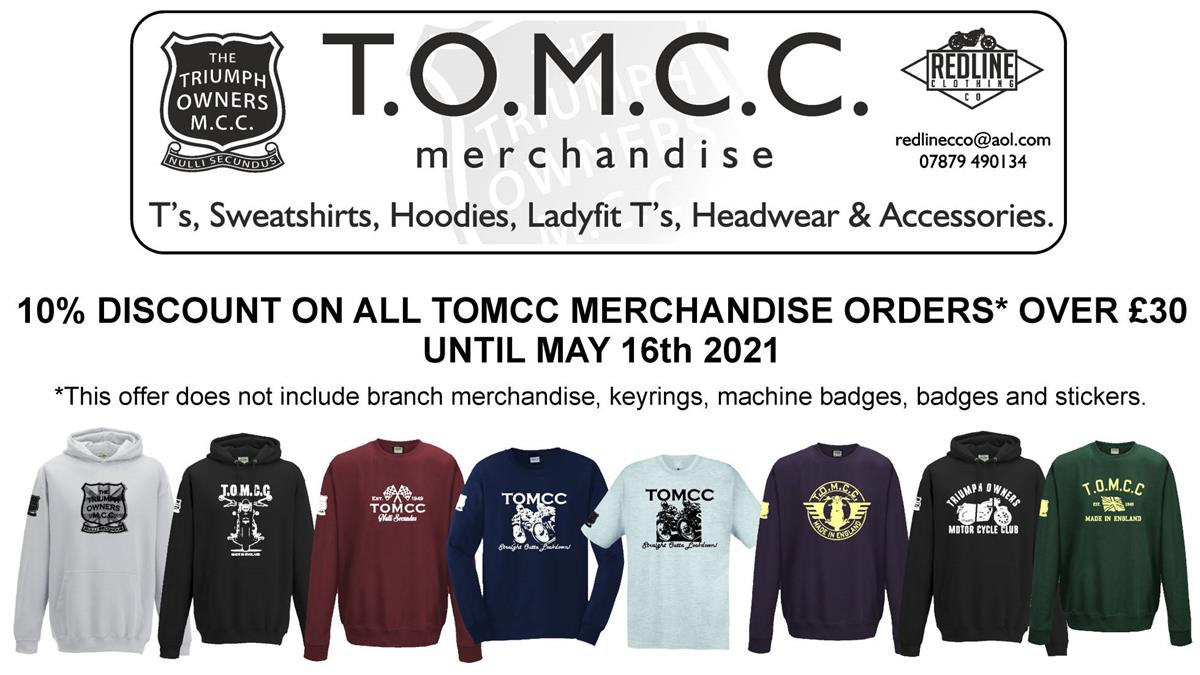 This week we’re offering members a 10% Discount on TOMCC merchandise for orders of £30 and over. Simply place your order and add the MAYSAVER21 discount code at the checkout. This offer is available on TOMCC printed and embroidered clothing, headwear and accessories and ends on Sunday May 16th.