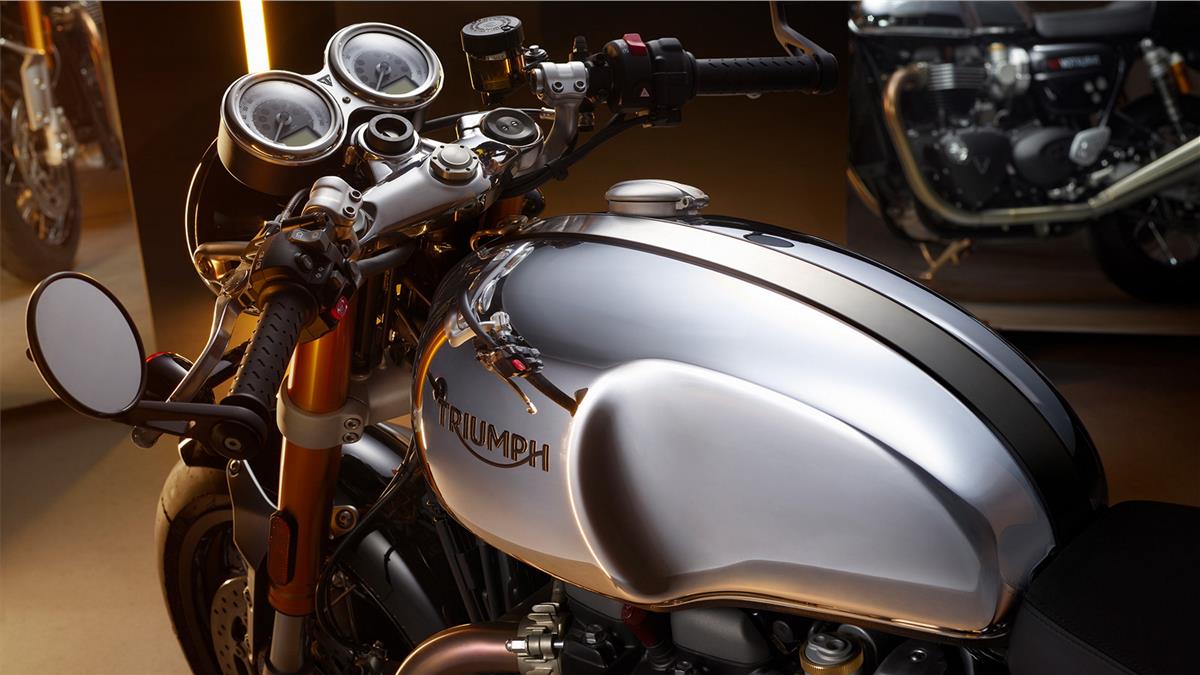 Triumph have released details of another make-over for their Modern Classic and Rocket models. Ten machines are getting the Chrome treatment with some pretty eye-catching paintwork. Most feature a bold colour overlay on a Chrome tank and there are Chrome edition accessories to compliment the look.